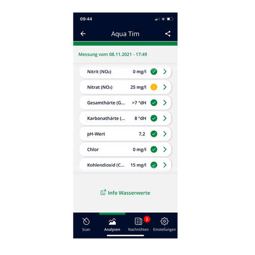 • Análisis y diagnóstico del agua con el smartphone: control fácil y seguro de los parámetros del agua dulce. Cálculo de: dureza general, dureza de carbonatos, pH, nitrito, nitrato, cloro y CO2